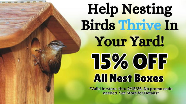 For a Limited Time, Save 15% OFF on All Nest Boxes for (Birds, Bees, Bats, and Toads).