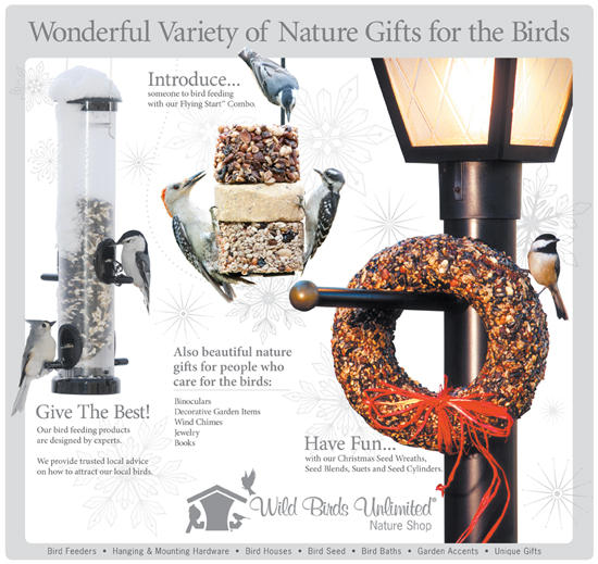 It's such a special time of year, a time to gather together and share the blessings of life with those that are closest to us. We see it manifested every year as customers visit our Wild Birds Unlimited store because they want to share their passion for nature and birds with their family and friends. They understand that the gift of nature continues to bring joy to the recipient's life long after the luster of other gifts has faded.